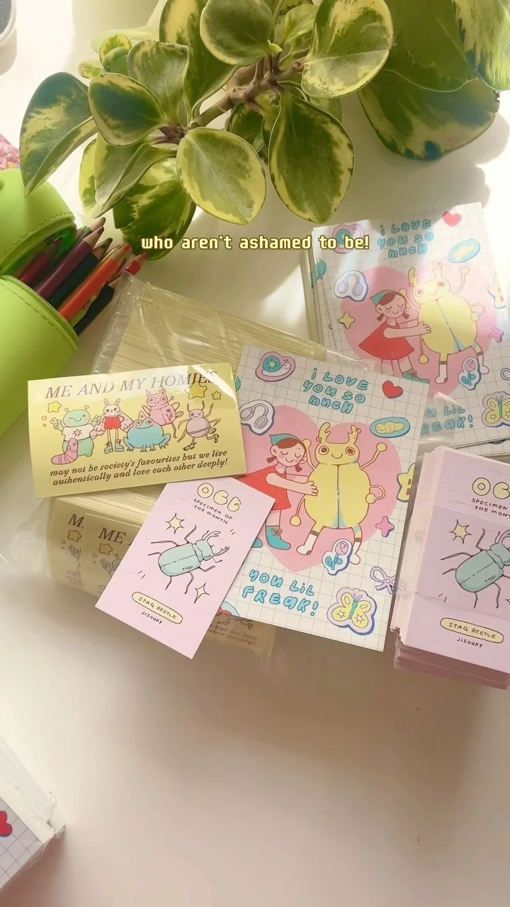 I have a deep love and appreciation for writing, the outdoors, colour and life, which all inform every piece that I make. Since 2016 I’ve been uploading my work through the name “Jisoupy”, and since then have built a community and small business around whimsical & hopeful illustrations, comics and designed objects.